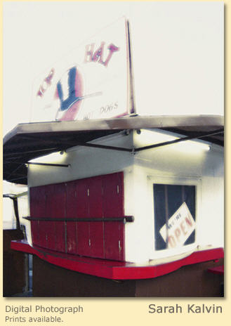 "The Top Hat is closed but the sign indicates otherwise. Doesn't this ironically mirror the conflicting situation the hamburger stand faces?"